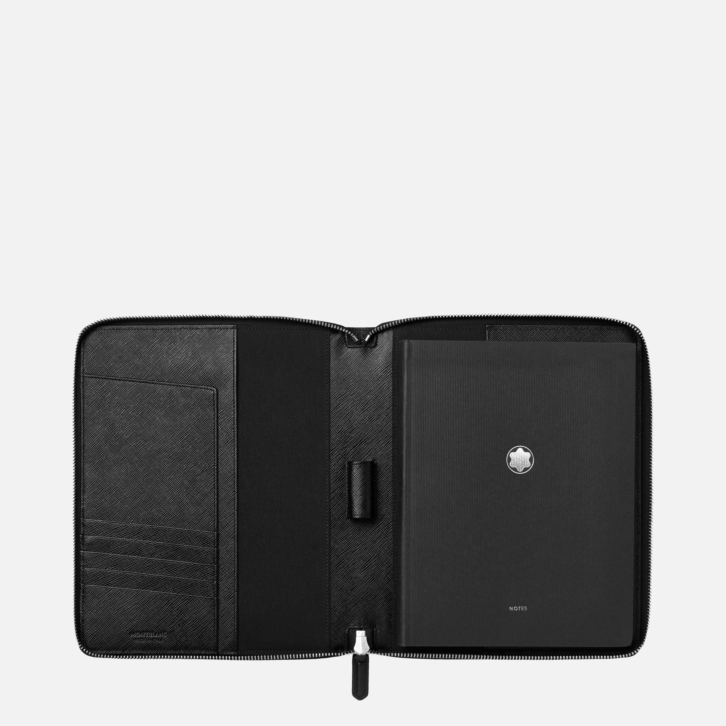 The Montblanc Sartorial Collection speaks the language of modern elegance. Made from Saffiano leather print, this Notebook provides a professional look and functionality given by the external open pocket as well as the organization inside. It is a daily match for any kind of meeting.